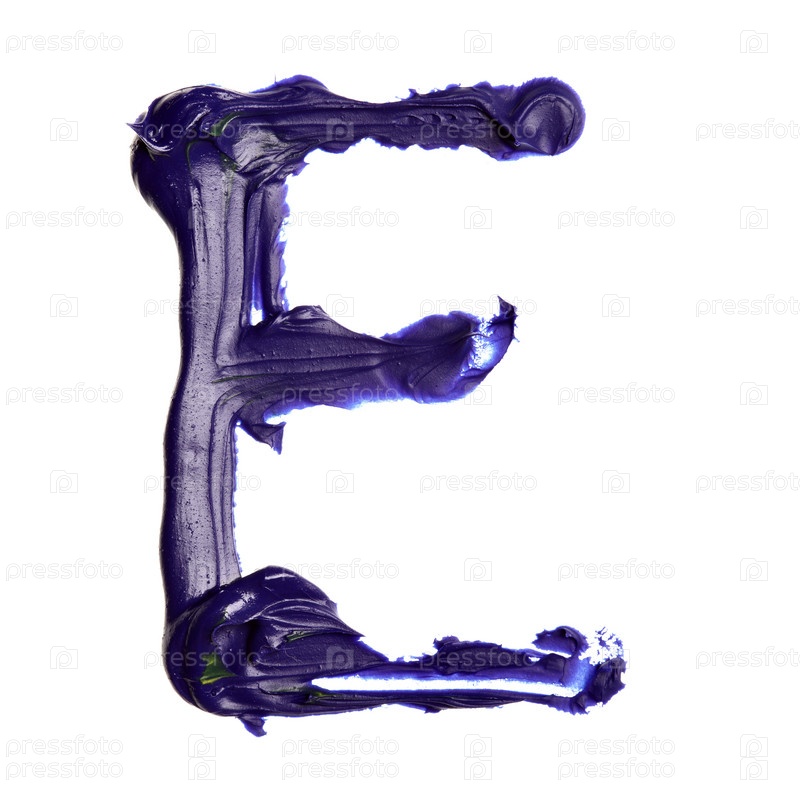 Алфавит, написанный маслом на белом фоне: буква E