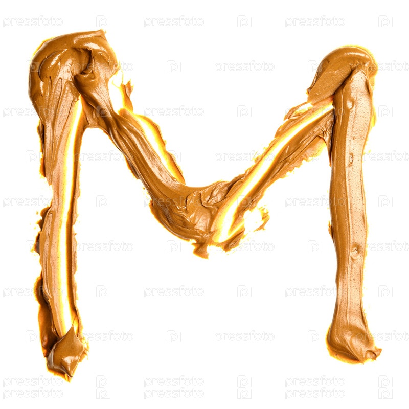 Алфавит, написанный маслом на белом фоне: буква M