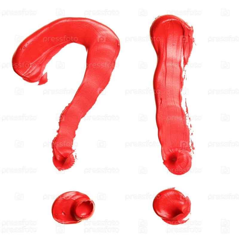 Вопросительный и восклицательный знаки, написанные маслом на белом фоне