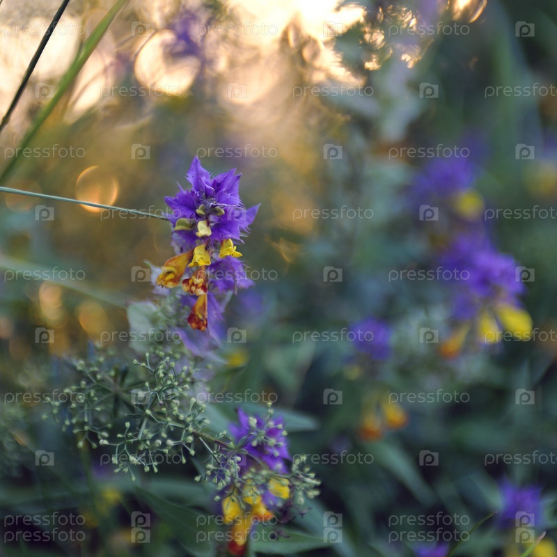 Красивые полевые цветы на закате