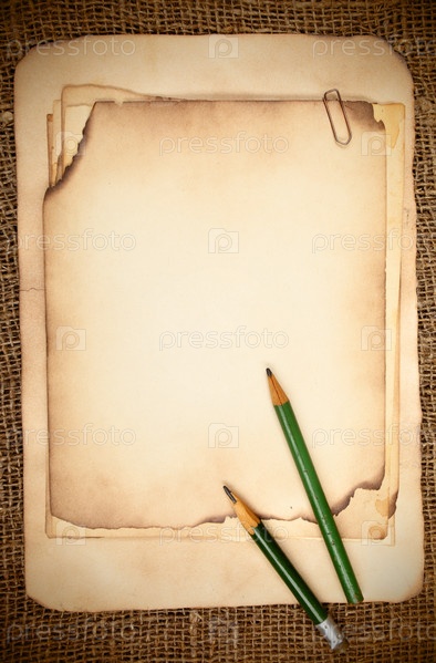 Натюрморт со старой бумагой и карандашами