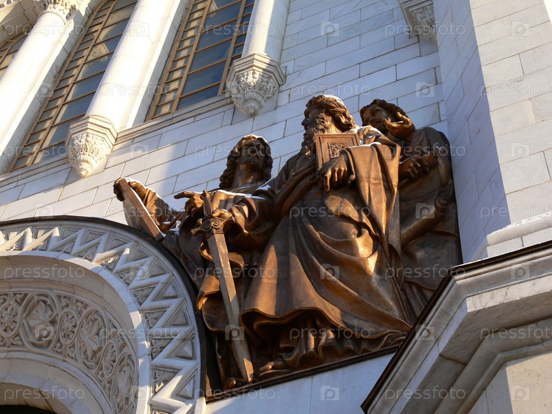 Скульптурная композиция на стене храма