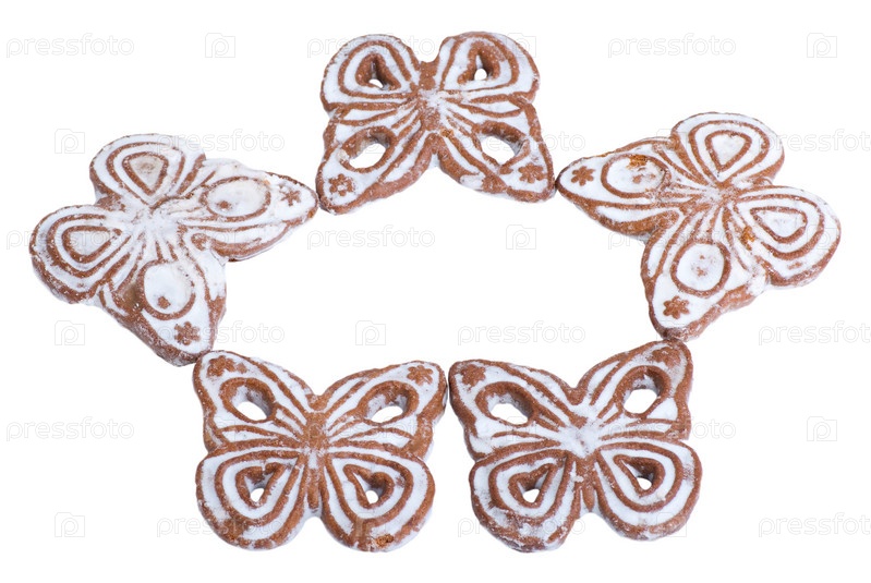 Печенье в форме бабочек на белом фоне
