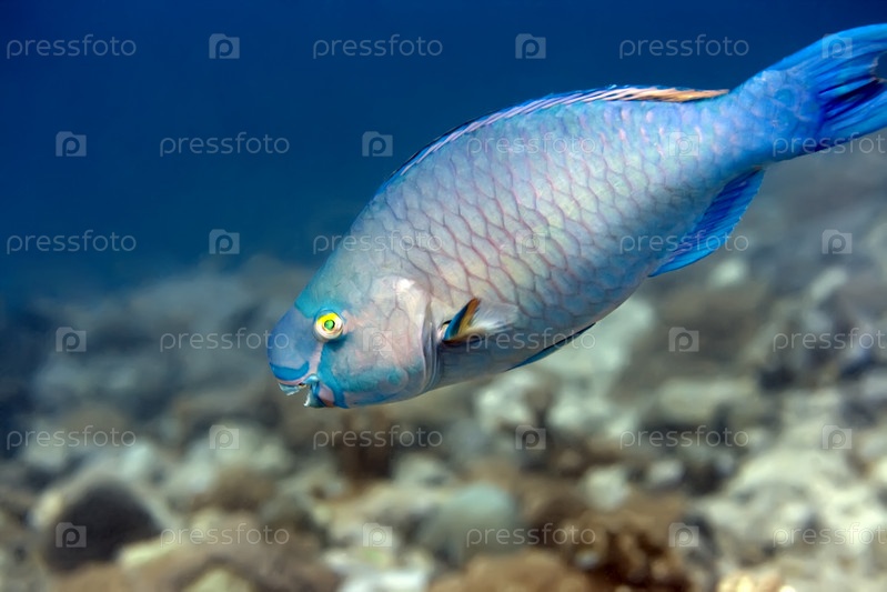 Голубая рыба-попугай и коралловый сад на дне океана, Мальдивы