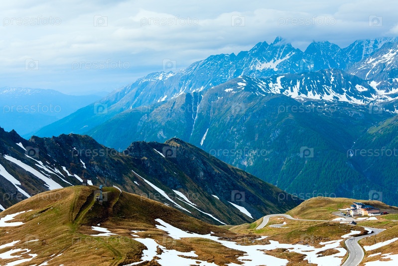 Вид на горные вершины Альп летом