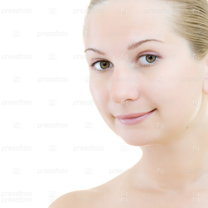 Лицо молодой женщины на белом фоне