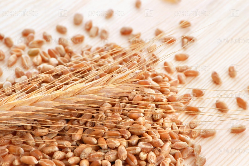 Колос и зерна пшеницы на столе