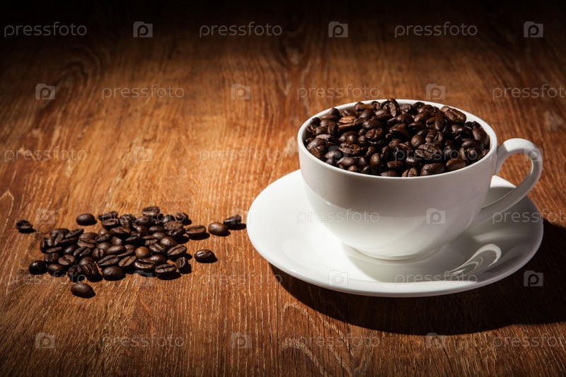 Кофе в зернах в чашке на столе