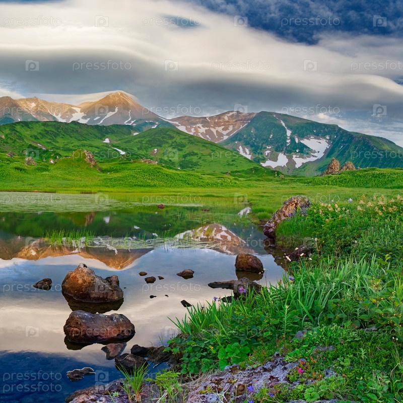 Горный пейзаж на острове Парамушир, Россия