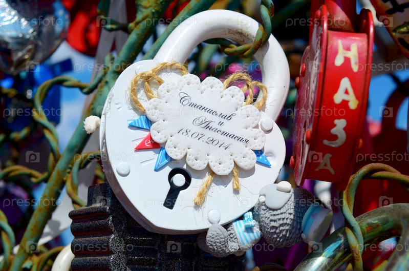 Цветные свадебные замки висят на железном дереве