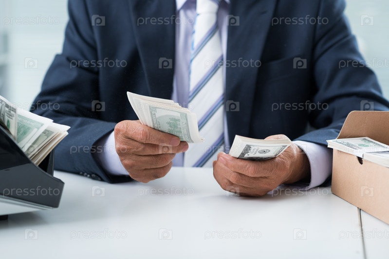 Бизнесмен считает доллары