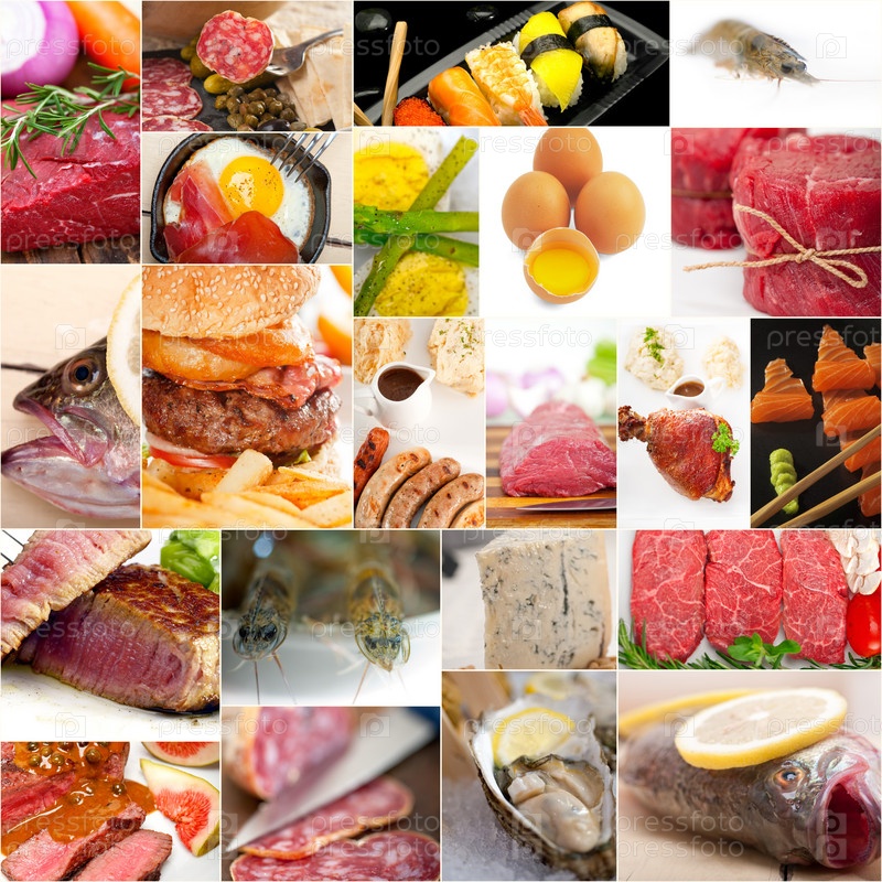 Коллаж из пищи с высоким содержанием белка