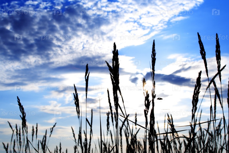 Зеленая трава на фоне облачного неба