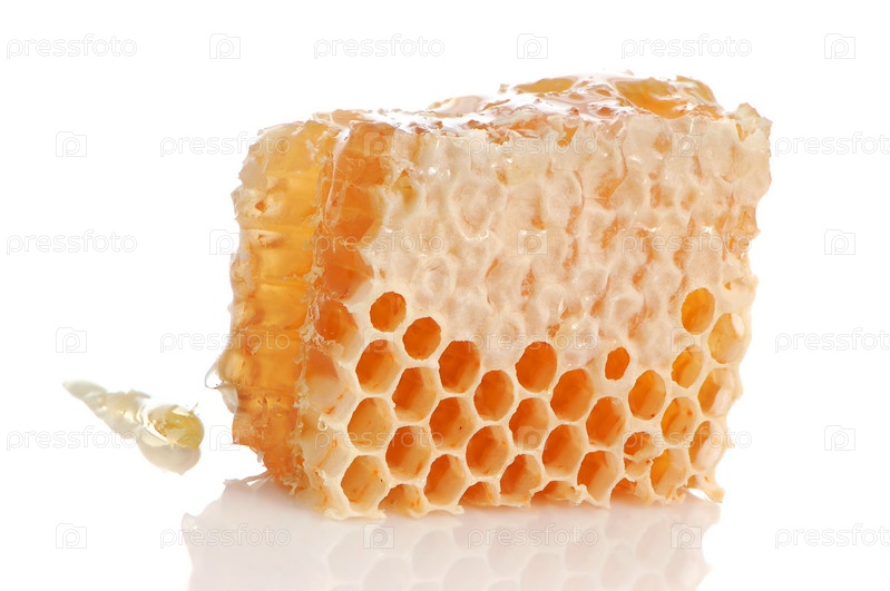 Соты с медом на белом фоне