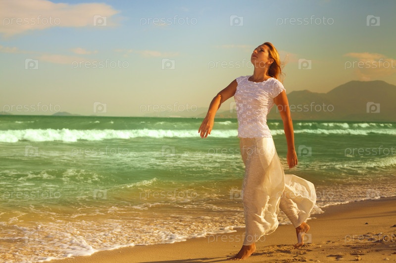 Женщина идет вдоль берега моря