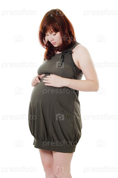 Беременная женщина на белом фоне