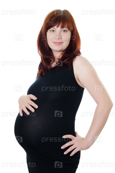 Беременная женщина на белом фоне