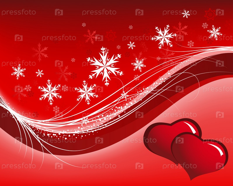 Фон с двумя сердцами и снежинками