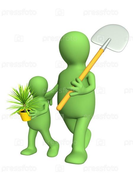Взрослый и ребенок, идущие посадить растение