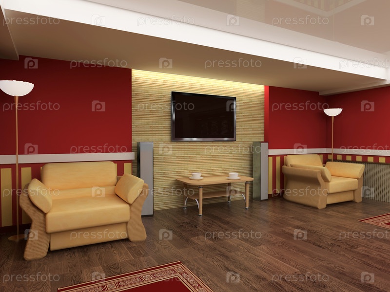 Эксклюзивный интерьер красной гостиной 3D-изображение
