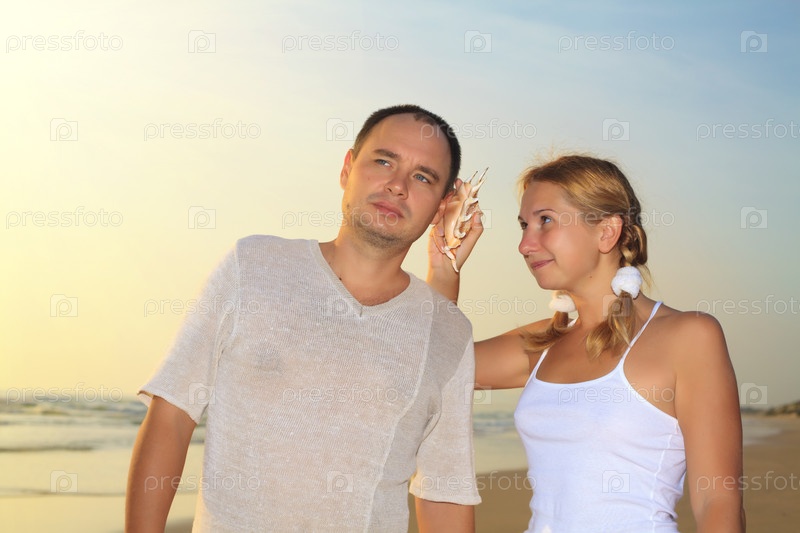 Молодая влюбленная пара на пляже