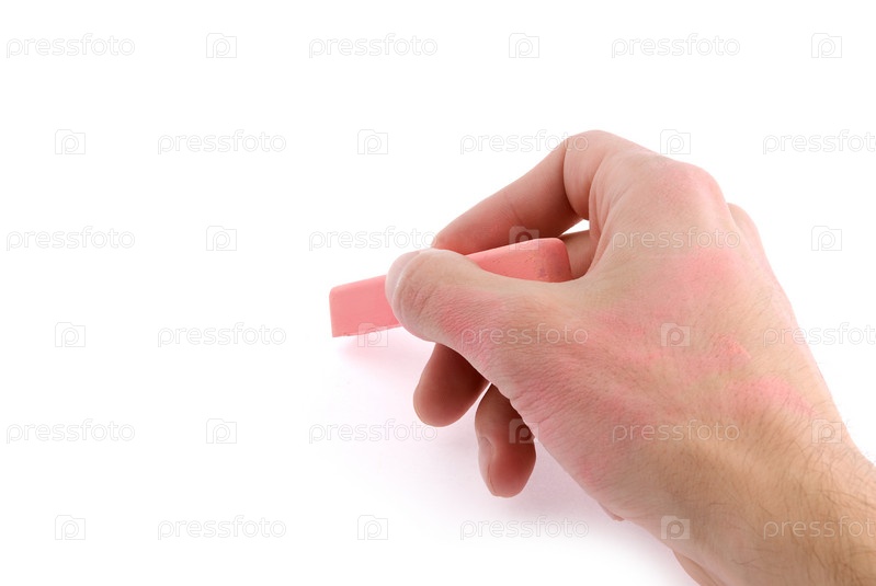 Рука пишет розовым мелом на белом фоне