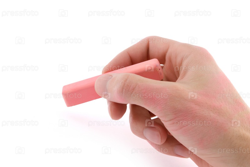 Рука пишет розовым мелом на белом фоне