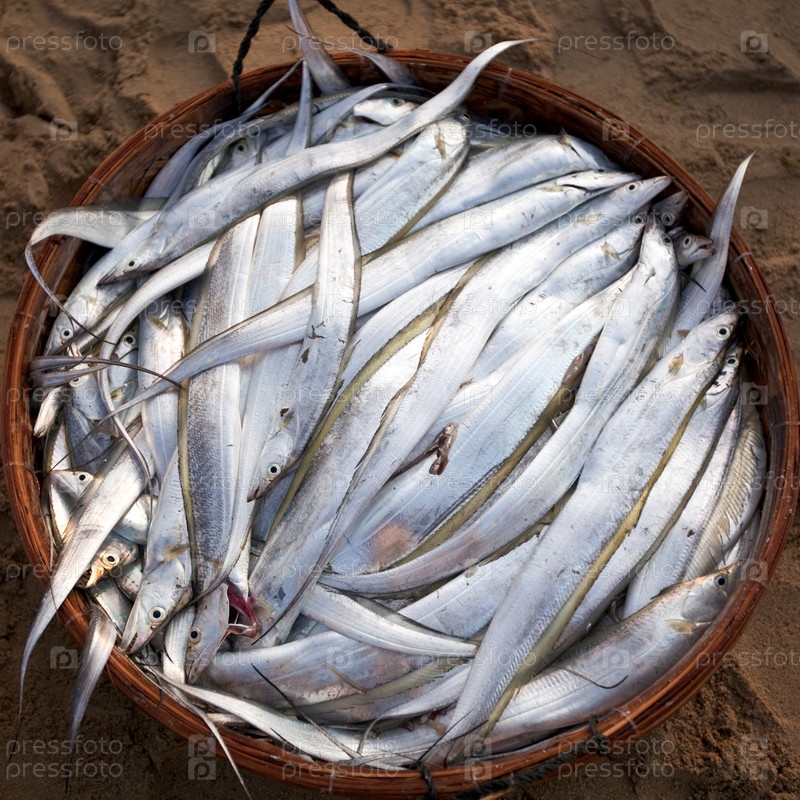 Рыба в корзине на рынке, Вьетнам