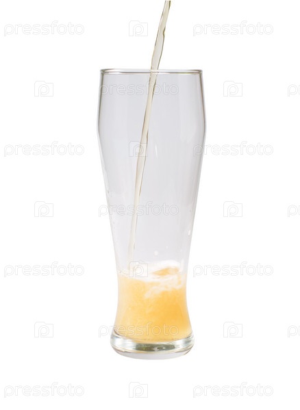 Наливание beer in a glass. It is isolated, on a white background