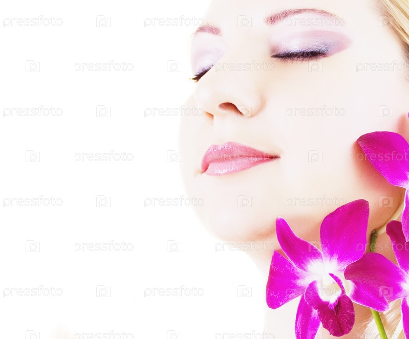 Портрет красивой девушки с цветами орхидеи