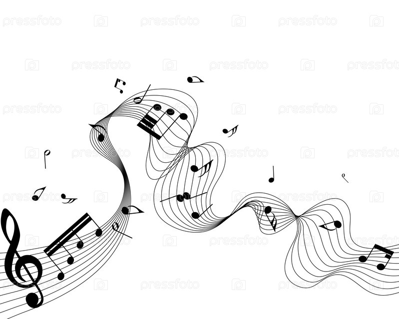 Музыкальные ноты и скрипичный ключ на белом фоне