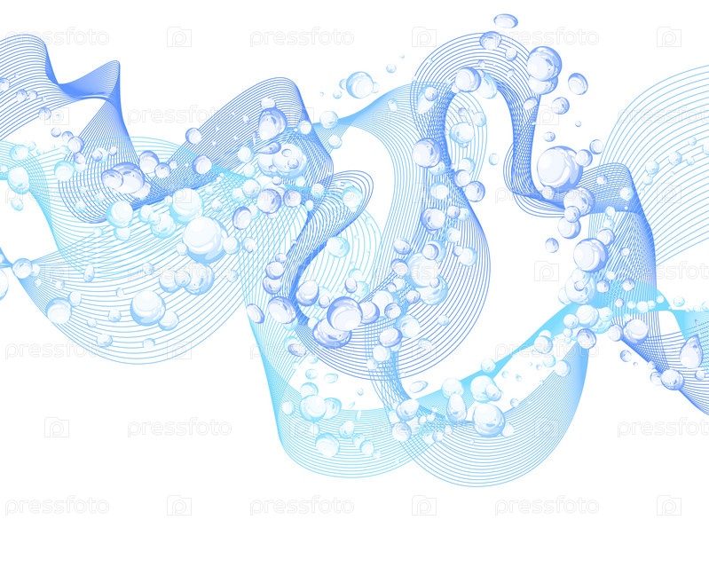Вода с пузырьками воздуха на белом фоне