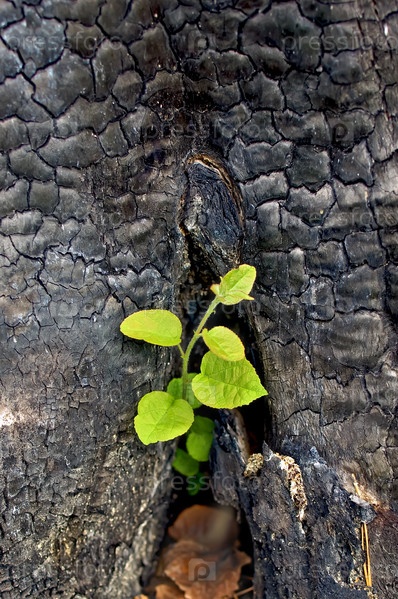 Молодое зеленое деревце, растущее из обгорелого пня
