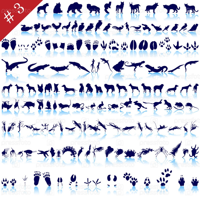 Силуэты животных, птиц, насекомых и рыб