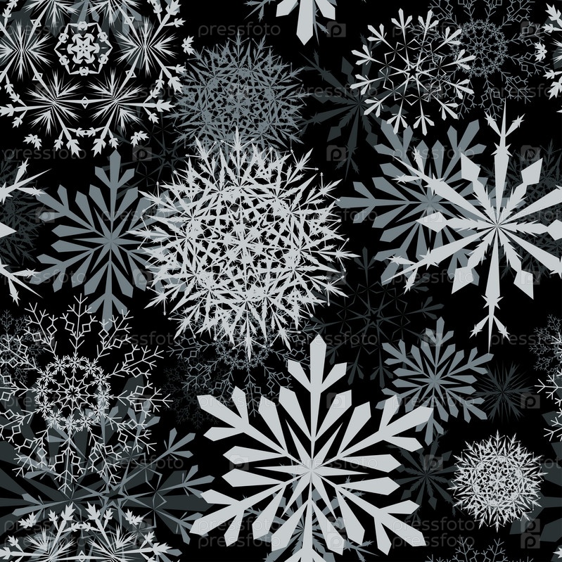 Серые снежинки на черном фоне