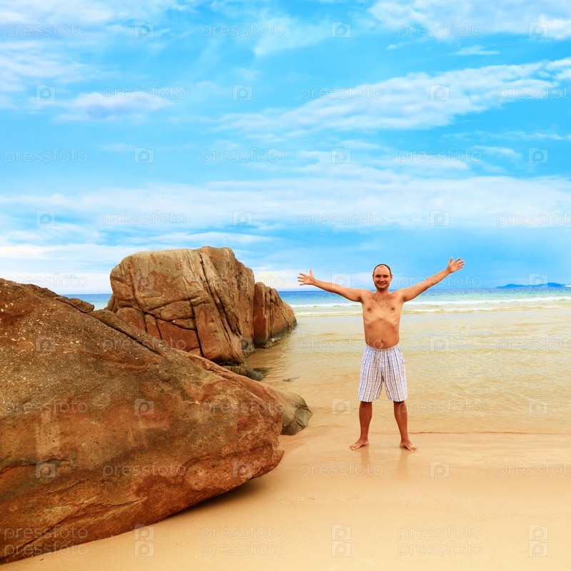 Мужчина стоит на берегу моря