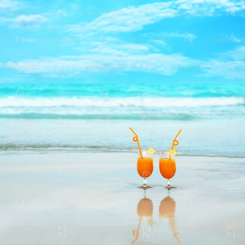 Два бокала апельсинового сока на пляже