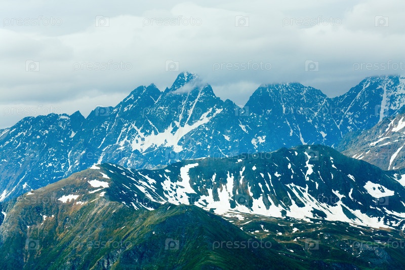 Вид на Альпийские горы с высокогорной дороги Гроссглокнер в июне