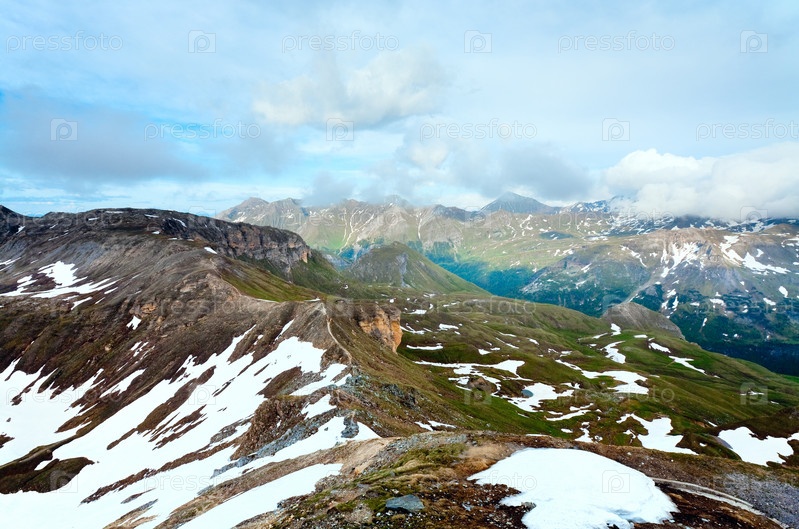 Вид на Альпийские горы с высокогорной дороги Гроссглокнер в июне