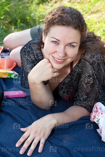 Молодая женщина на пикнике в летнем парке