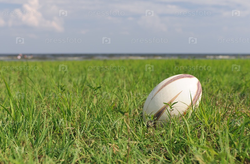 Мяч для игры в регби на зеленом поле