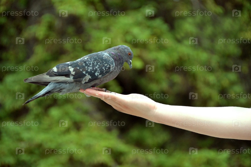 Голубь на женской руке
