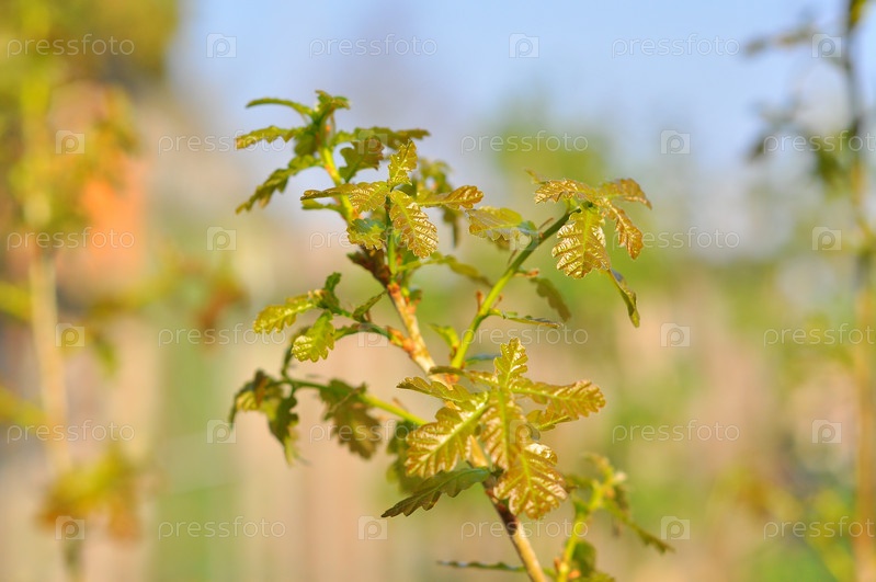 Ветка молодого дуба крупным планом