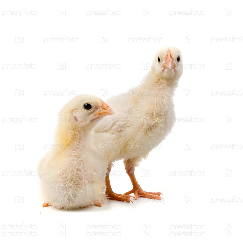 Желтые цыплята, изолированы на белом фоне