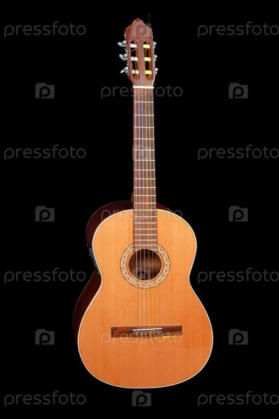 Акустическая классическая гитара на черном фоне