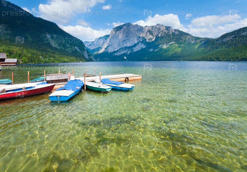 Лодки на озере у подножия Альп, Австрия