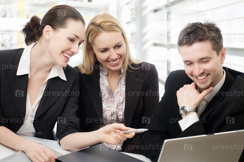 Команда бизнесменов смотрит в ноутбук