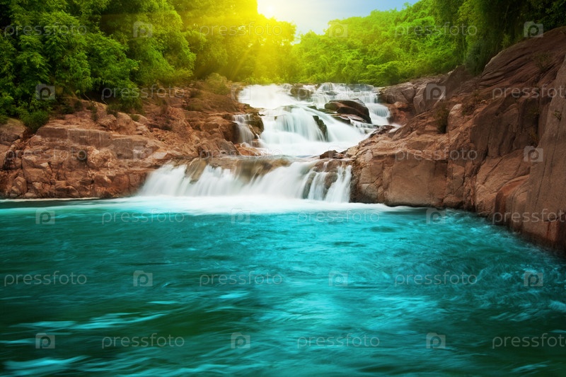 Водопад в тропическом лесу