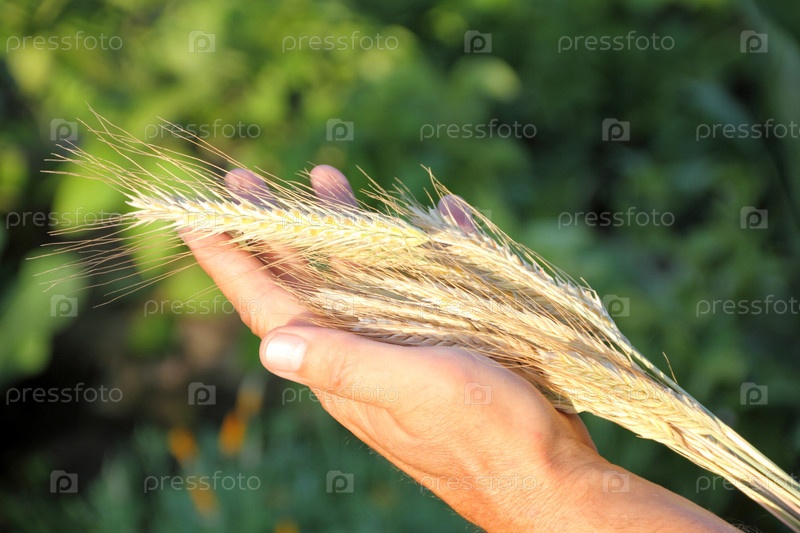 Желтые колосья в руке фермера