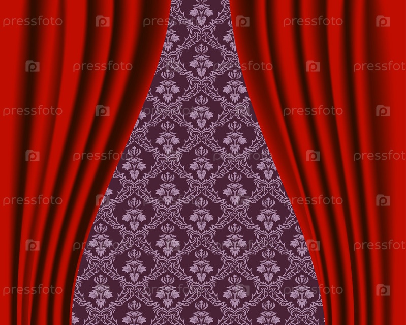 Красный занавес на фоне узора, векторный рисунок